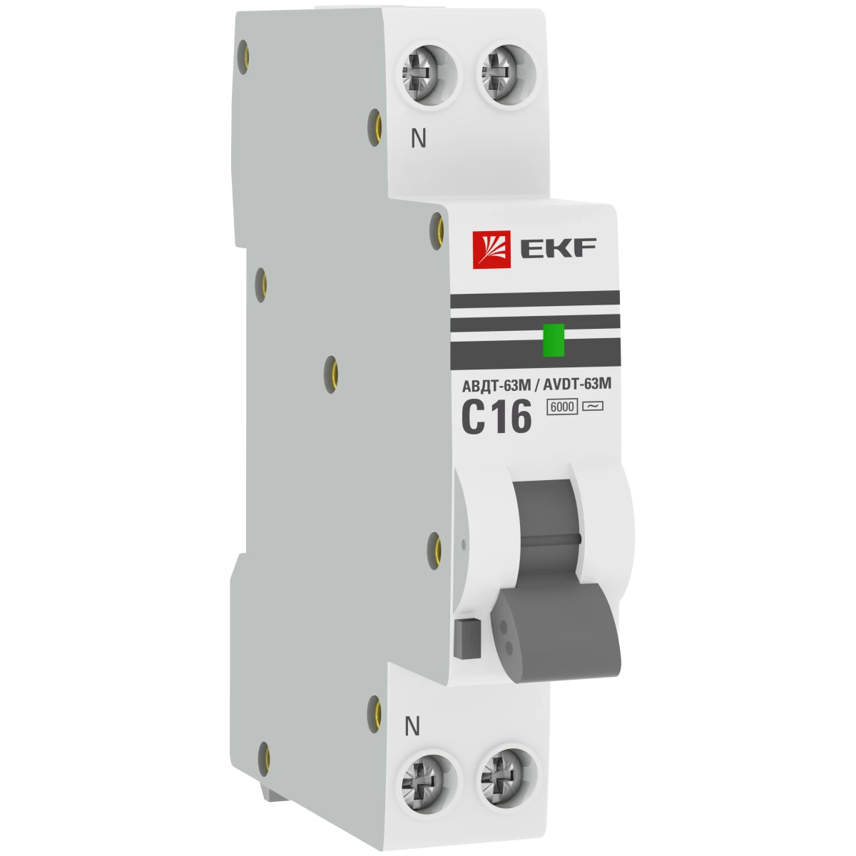 Автом. диффер. АВДТ-63, 1П, 16А, 30мА, тип С, EKF