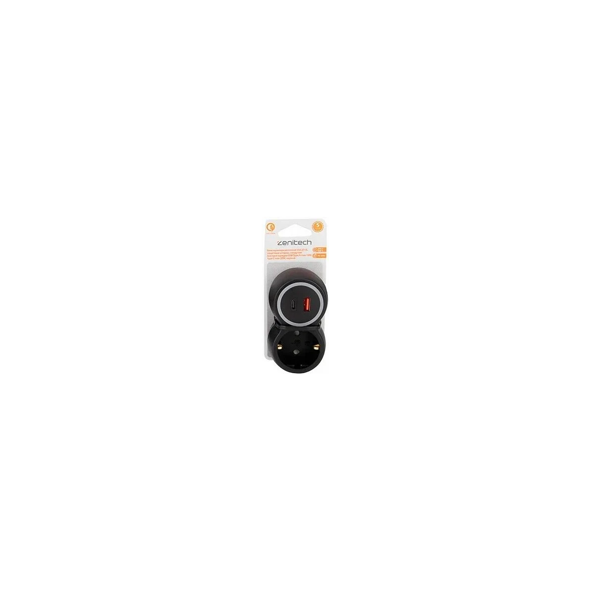 Блок мультирозеточный 16А 2P+E, с модулем зарядки 18W, 20W, черный, Zenitech, 191908, Китай