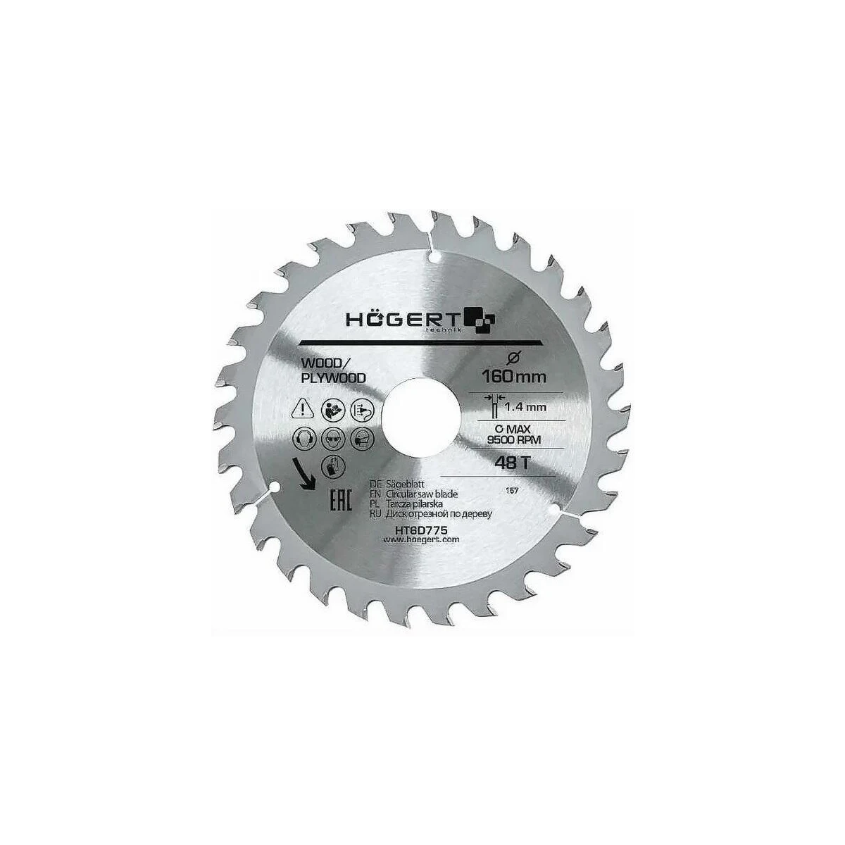 Диск пильный по дереву 160x30 мм, 48Т, HOEGERT TECHNIK HT6D775 характеризуется высокой устойчивостью к температуре и деформации. Подходит для резки различных материалов из цельной древесины и древесных материалов, таких как ДСП, ДВП и фанера. Предназначен для использования с ручными и аккумуляторными циркулярными и торцовочными пилами. Благодаря малой ширине режущей кромки пильный диск оказывает меньшее сопротивление при пилении. Его можно использовать во время ремонтно-строительных, отделочных и столярных работ. Изготовлен из сплава марганцевой стали Mn65. Благодаря использованию высококачественного сырья идеально подходит для профессионального использования. Технические характеристики диска пильного по дереву HOEGERT TECHNIK HT6D775 Тип по дереву Диаметр 160 мм Диаметр (дюйм) 6 1/4 Посадочный диаметр 30/25/20/16 мм Ширина пропила 1,4 мм Количество зубьев 48 шт Max число оборотов 9500 об/мин Преимущества диска пильного по дереву HOEGERT TECHNIK HT6D775 Редукционные кольца позволяют использовать диск на большинстве пил, представленных на рынке. Тип зуба: ATB обеспечивает резание без сколов. Закаленный корпус лезвия гарантирует меньший нагрев и деформацию. Повышенная износостойкость режущей кромки. Идеальное сочетание оптимальной скорости резки и срока службы лезвия.