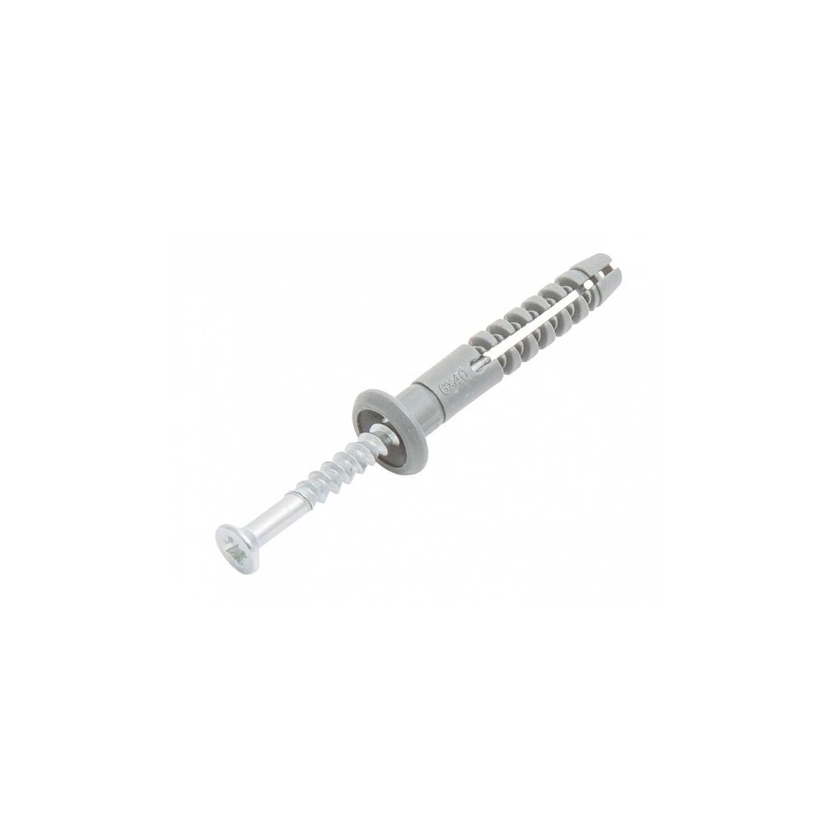 Распорная часть дюбеля состоит из двух сегментов. На шляпке гвоздя крестовой шлиц, позволяющий осуществлять демонтаж или юстировку конструкции.