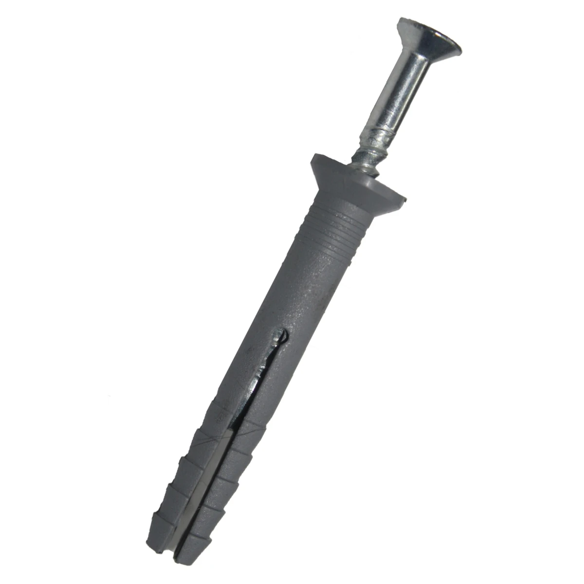 Принцип работы: при забивании гвоздя дюбель равномерно распирается в стенках отверстия.