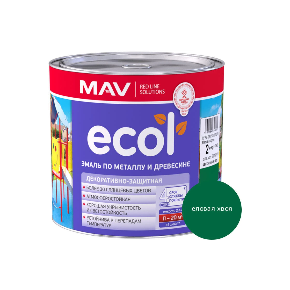 Эмаль ПФ-115 ECOL (банка/2.0кг) еловая хвоя, MAV, Беларусь