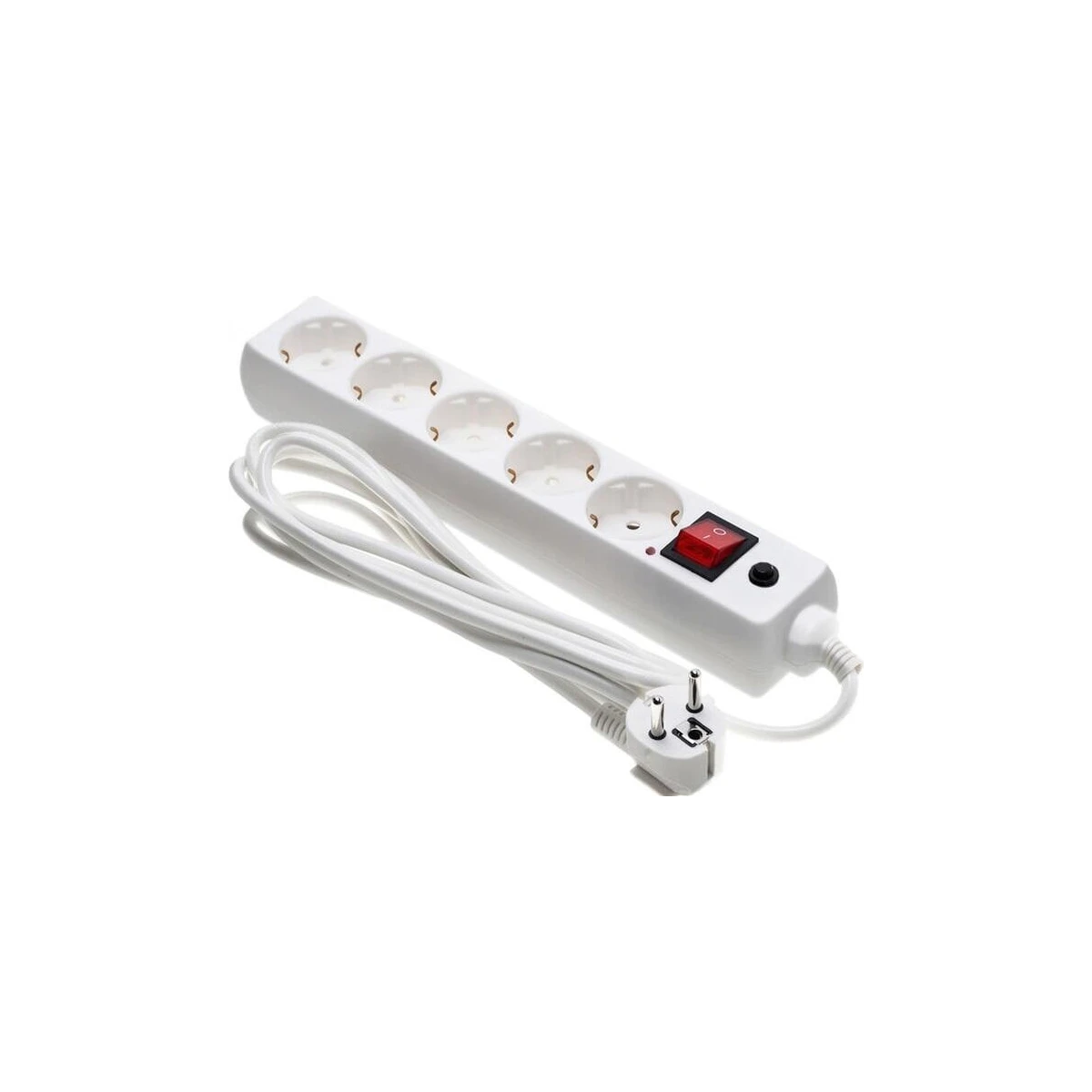 Фильтр сетевой с выкл, 5роз, 2м, ПВС 3*1.5, 3,5кВт, с з/к, белый, ЭТП, 77511, Китай