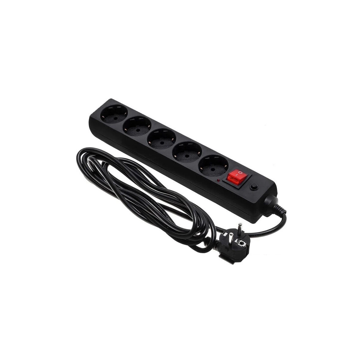 Фильтр сетевой с выкл, 5роз, 2м, ПВС 3*1.5, 3,5кВт, с з/к, черный, ЭТП, 77513, Китай