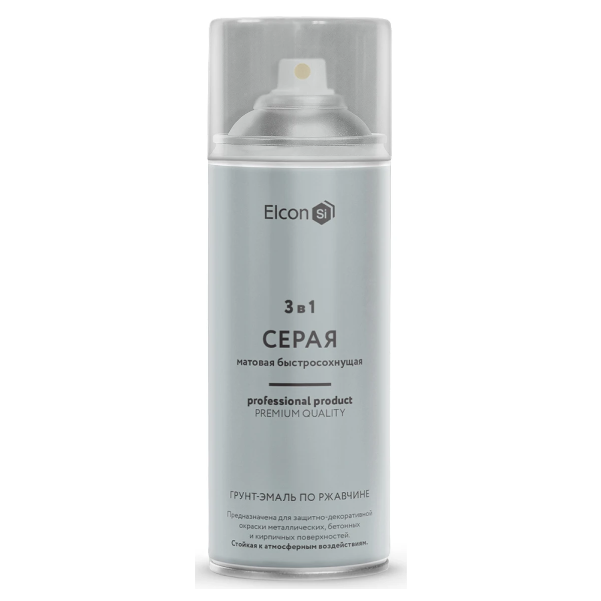 Грунт-эмаль по ржавчине матовая серая (балон/520мл) Elcon, Россия