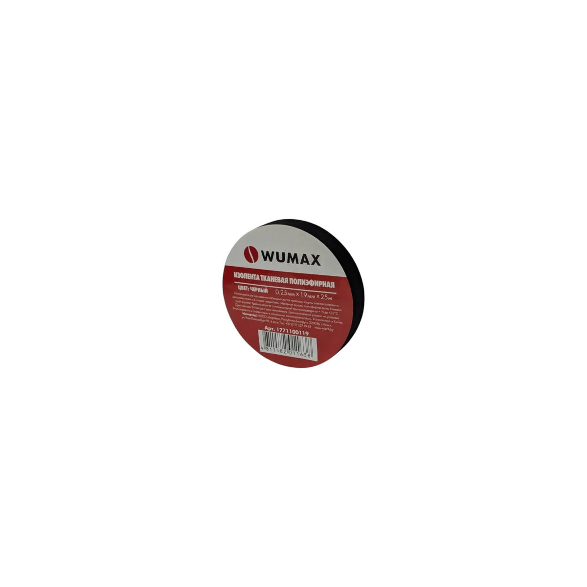 Изолента тканая черная 19ммх10м, WUMAX, 1771100219, Китай
