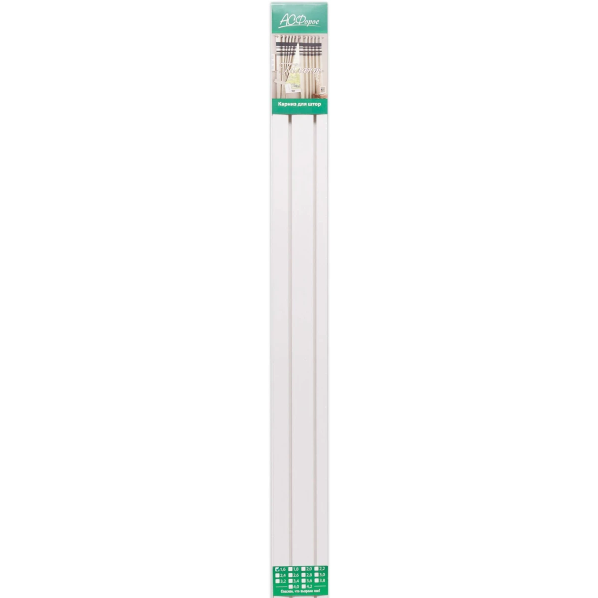 Общие характеристики: Тип: карниз для штор Вид: багетный Крепление: потолочный Материал: пластик Количество рядов: 2 Крепления для штор: есть Наконечники: заглушки Коллекция: Галант Цвет: белый Длина: 220 см