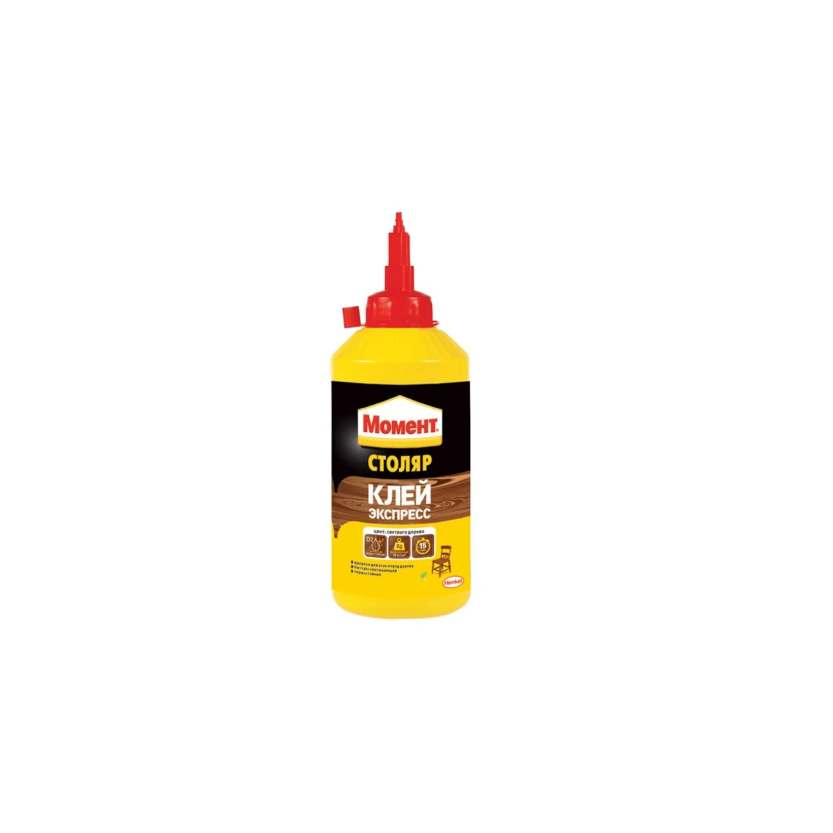 Применение: Клей СТОЛЯР Момент предназначен для различных пород дерева. С его помощью склеивают ДСП, фанеру, шпон, ламинат, картон, фурнитуру, ткань, кожу, некоторые пластики. Шов получается высокопрочный и устойчивый к кратковременному воздействию воды (водостойкость D2). Используют, например, при сборке и ремонте мебели.