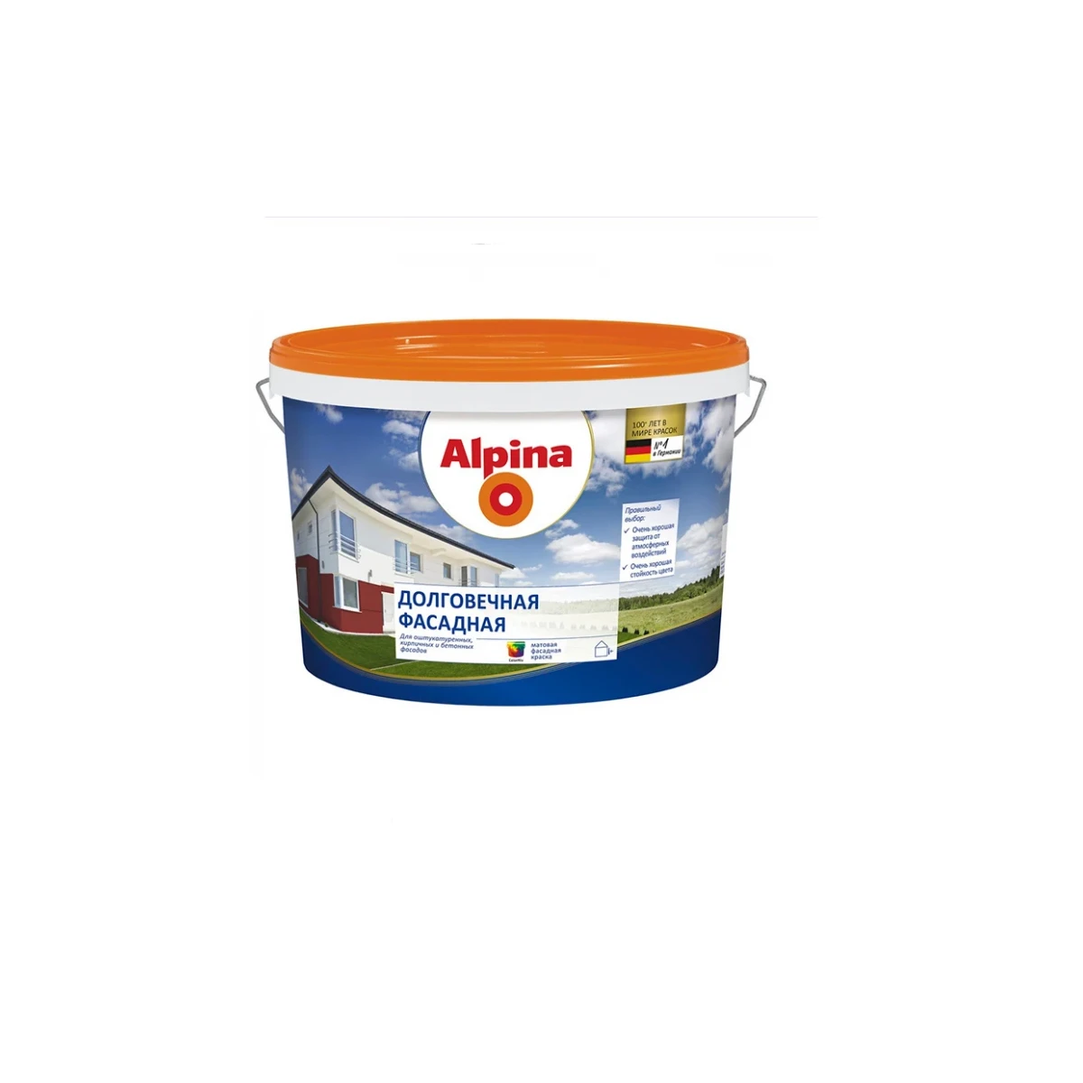 Краска ВД-АК Долговечная фасадная База 1, белая (ведро/2,5л/3,9кг) ALPHINA, Беларусь