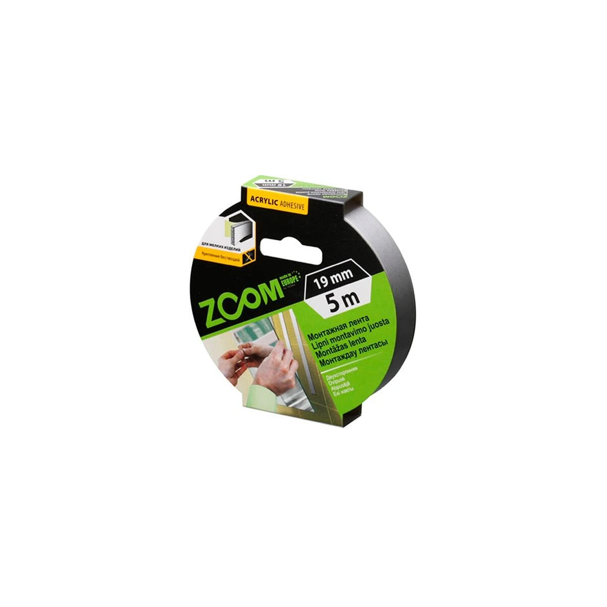 Лента двухсторонняя монтажная клейкая ZOOM 19мм\5м, Литва