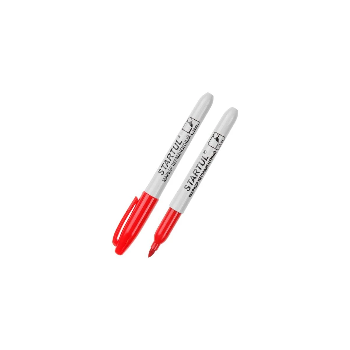 Маркер перманентный фетровый STARTUL Profi красный (ST4350-03) предназначен для нанесения надписей и маркировки на различных материалах - дерево, металл, стекло, керамика, гипс, резина, кожа, ткань, картон, пластик. Чернила на масляной основе. Технические характеристики: Вид маркера: перманентный; Толщина линии: 1,5 мм; Форма корпуса: круглая; Форма наконечника: круглый; Цвет: красный.