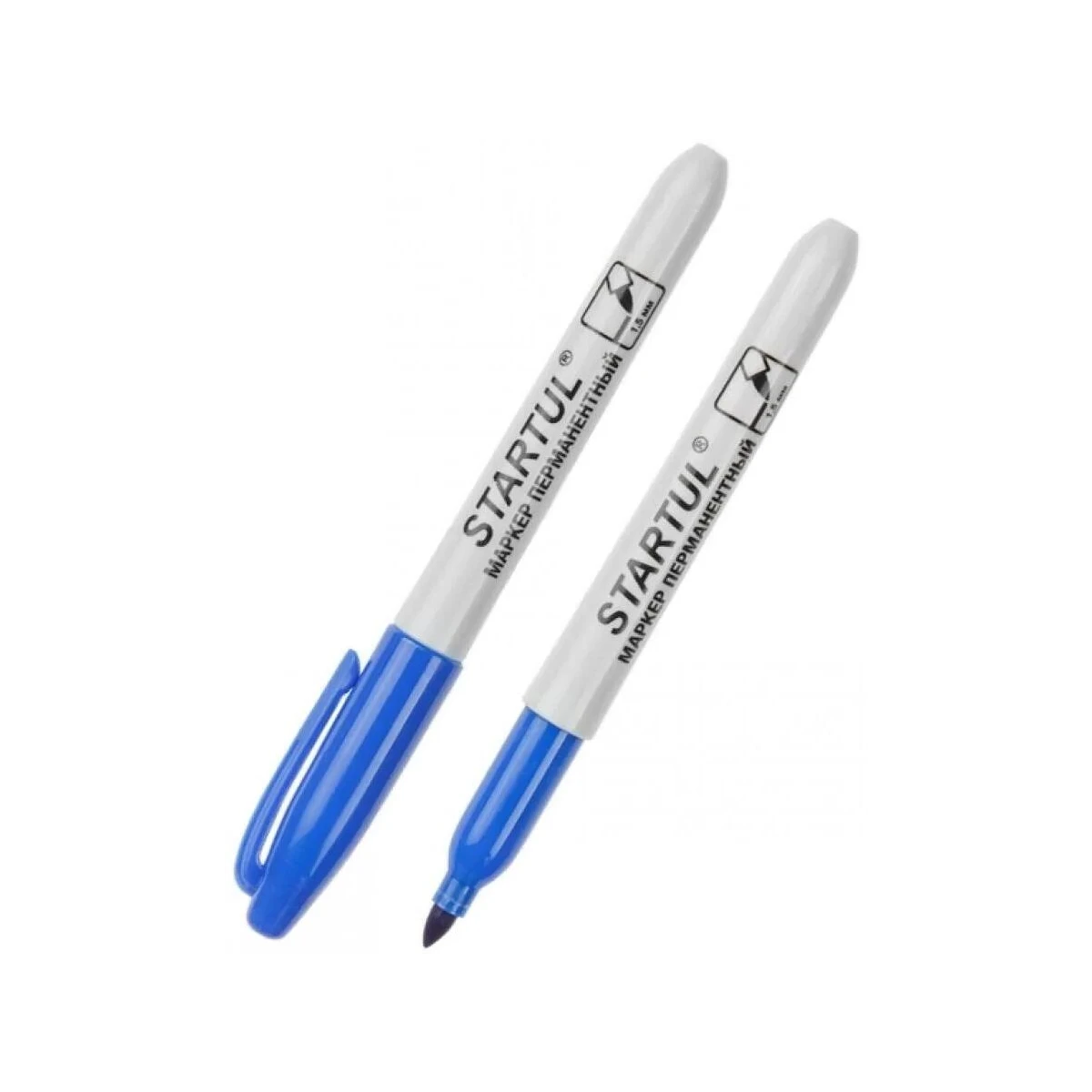 Маркер перманентный фетровый STARTUL Profi синий (ST4350-02) предназначен для нанесения надписей и маркировки на различных материалах - дерево, металл, стекло, керамика, гипс, резина, кожа, ткань, картон, пластик. Чернила на масляной основе. Технические характеристики: Вид маркера: перманентный; Толщина линии: 1,5 мм; Форма корпуса: круглая; Форма наконечника: круглый; Цвет: синий.