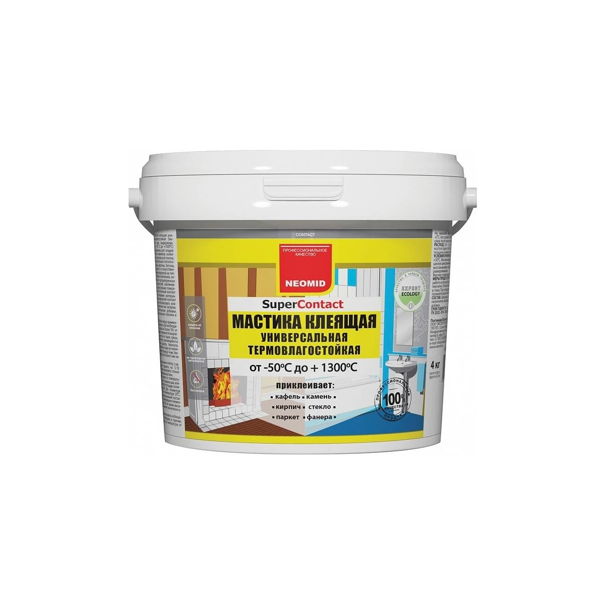 Мастика клеящая НЕОМИД термостойкая универсальная 1,5 кг предназначена для кладки и облицовки печей и каминов, склеивания кафельной и метлахской плитки, стекла, пенополистирольных потолочных плиток, дерева, картона, бетона, кирпича, натурального и искусственного камня (кроме материалов на гипсовой основе) в любых сочетаниях, неглубокой шпатлевки оштукатуренных и бетонных поверхностей, наклеивания фанеры на стяжку (кроме поверхностей, имеющих постоянный контакт с водой).