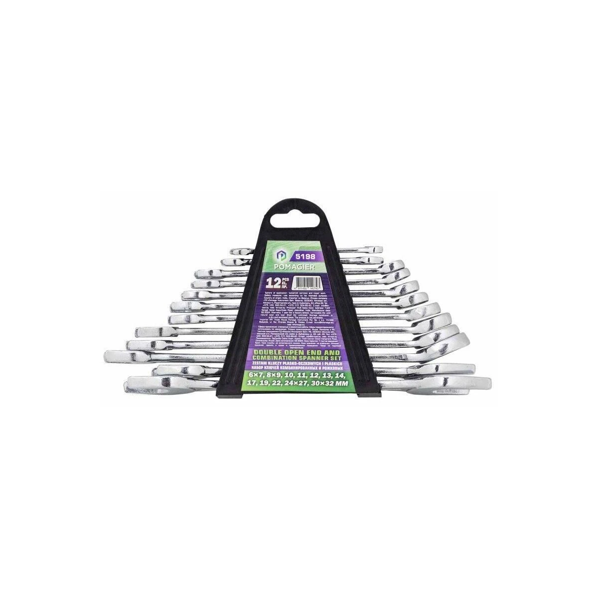 Набор ключей комбинированных (12пр), 6-22мм, Помощний, 5198, Индия