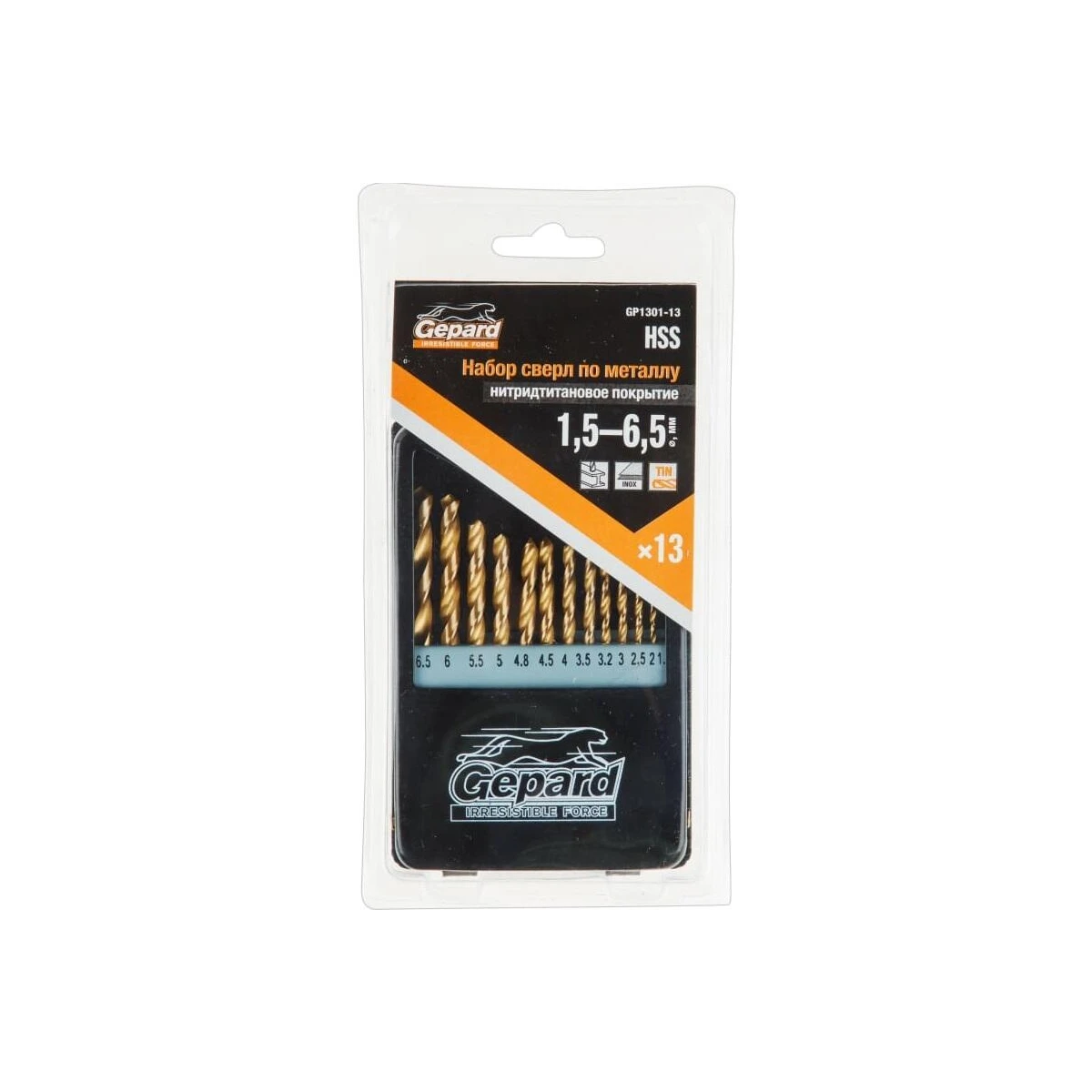 Набор сверл по мет. 13шт 1.5-6.5мм HSS TIN GEPARD, GP1301-13, Китай