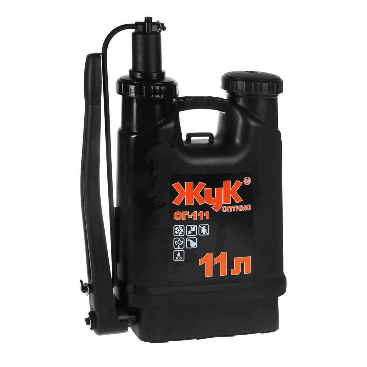 Ранцевый гидравлический опрыскиватель подойдет для обработки больших площадей и высоких растений. Радиус распыления до 1680 мм обеспечивается за счет наличия регулируемого распыла брандспойта, для удобства хранения которого предусмотрен пластиковый боковой карман.