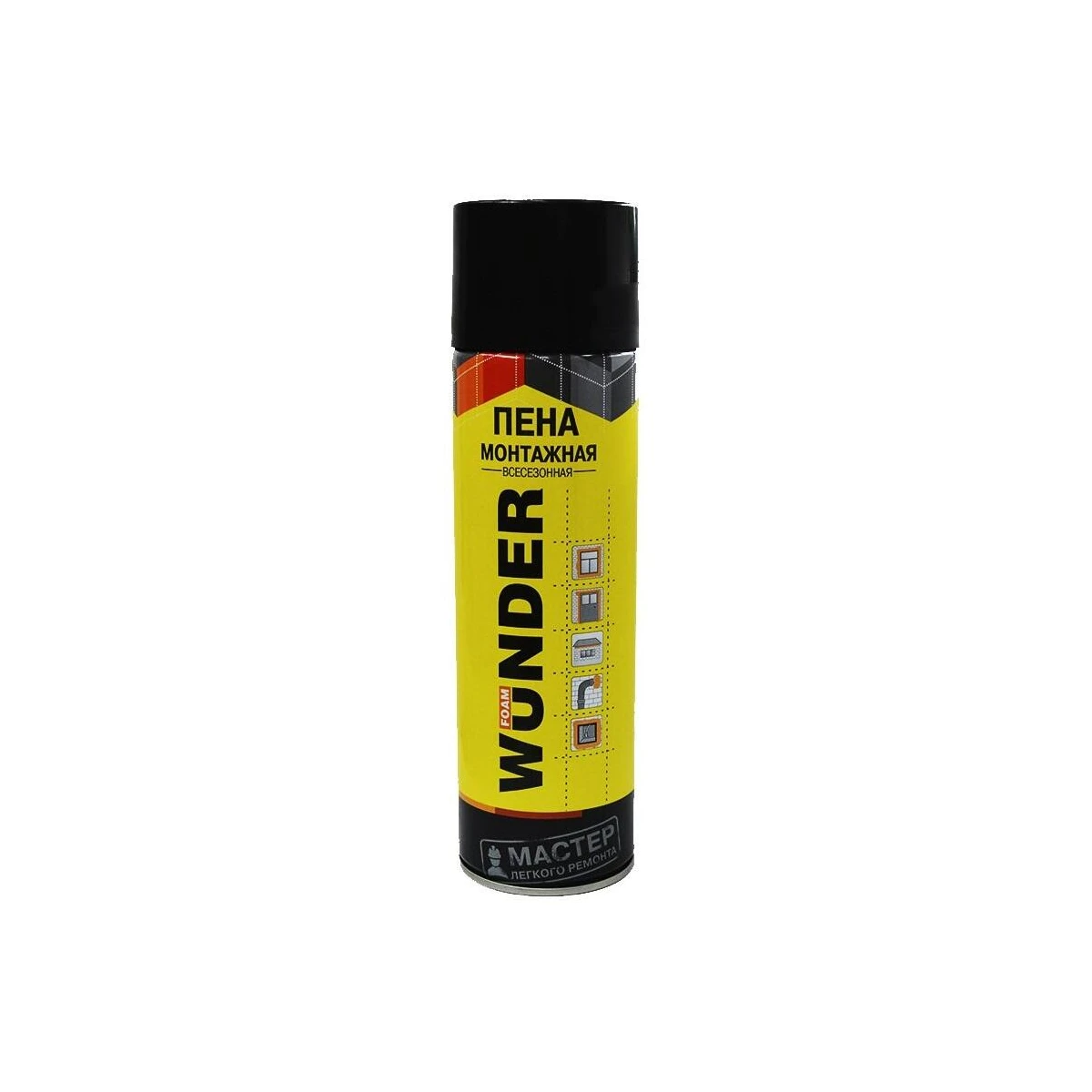 WUNDER Foam - всесезонная монтажная пена бытового назначения для герметизации, тепло- и звукоизоляции швов, щелей, пустот. Применяется при монтаже деталей, выполнении строительных и отделочных работ, а также в различных областях промышленности и в быту. Для регулировки скорости выхода и объема пены баллон оборудован курком. Полное отверждение происходит через 24 часа. Объем баллона 335 мл. Максимальный выход 20 литров. Во время работы баллон необходимо удерживать дном вверх.