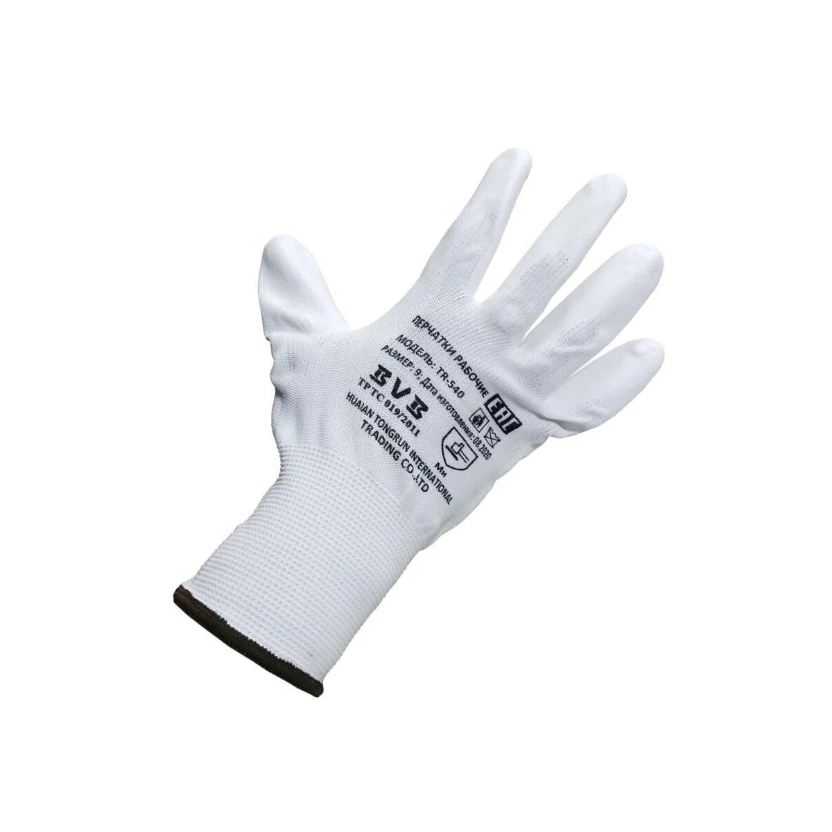 Перчатки из полиэстра белые с ПУ покр. 10кл, арт. 650001