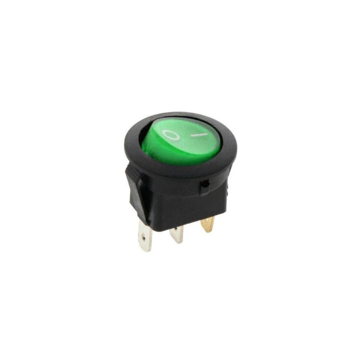 Переключатель клавишный круглый BG-101-3-G зеленый с подсв. 2пол., 89922, Китай