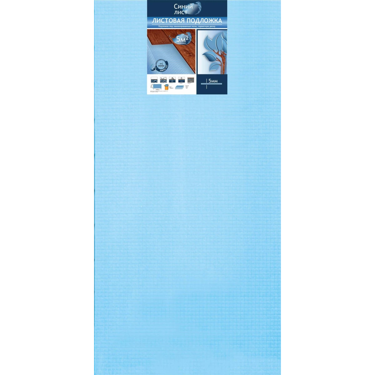 При давлении на подложку она не деформируется и первоначальная форма сохраняется, а так же на протяжении всего срока эксплуатации подложка сохраняет все свои свойства. Характеристики: Цвет: синий. Особенности: листовая. Шумопоглощение: да. Использование для теплых полов: да. Влагостойкость: да. Теплоизоляция: да. Толщина: 5 мм. Площадь доски: 0.53 м². В упаковке: 5 м².
