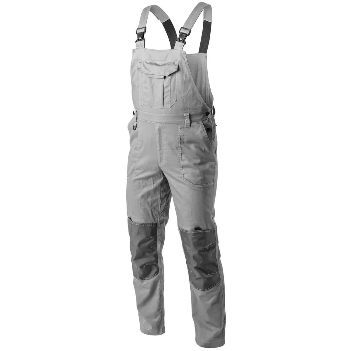 Качественно изготовленный мужской защитная полукомбинезон. Высококачественный материал и крепкое переплетение обеспечивают прочность и высокий комфорт использования. Технический крой не ограничивает движения. Имеет светоотражающие элементы, позволяющие увеличить безопасность работы в условиях плохой видимости. Полукомбинезон доступен в стильном светло-сером цвете с синими акцентами и широкой гамме размеров (от S до 3XL). Идеально подходит для производственных и строительных рабочих. Также рекомендуется для слесарей, сервисных и технических специалистов.