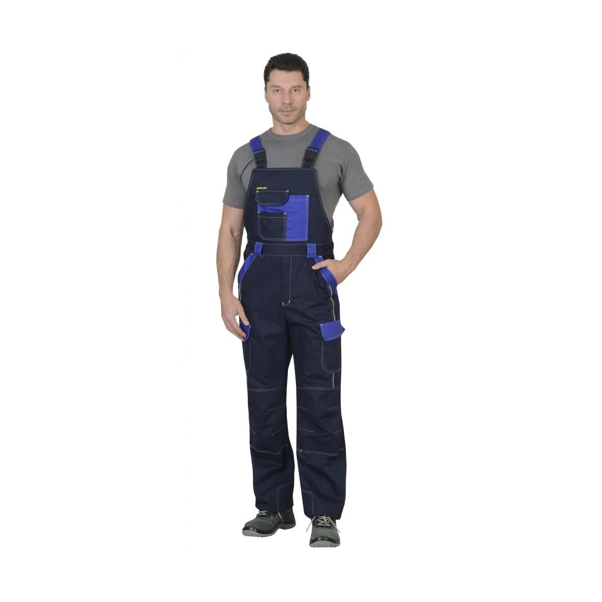 Полукомбинезон с застежкой гульфика на молнию, застёжкой в правом боковом шве на пуговицы, с нагрудным накладным карманом, с боковыми внутренними карманами и накладными фигурными карманами на боковых швах с фигурными клапанами на липучке. Изделие с объемными наколенниками, с двумя задними накладными фигурными карманами. По спинке в поясе вставлена резинка ткацкая для лучшего прилегания.