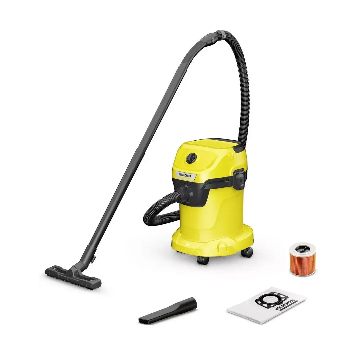 Энергоэффективный аппарат развивает высокую силу всасывания при низкой потребляемой мощности (лишь 1000 Вт). При этом он оптимально сочетается со всасывающим шлангом и снабженной вставками насадкой для пола, благодаря чему обеспечиваются превосходные результаты сбора любого мусора — сухого или влажного, крупного или мелкого. Этот хозяйственный пылесос, впечатляющий своей компактностью, оснащен прочным 17-литровым пластмассовым мусоросборником, 4-метровым кабелем, 2-метровым всасывающим шлангом и фильтр-мешком из нетканого материала. Благодаря неразборному патронному фильтру он позволяет чередовать операции влажной и сухой уборки без замены фильтра. Встроенная штепсельная розетка с автоматикой включения/отключения позволяет подключать к нему электроинструменты (лобзики, шлифовальные машины и т. д.) для немедленного сбора пыли и стружки, образующихся при выполнении работ с ними. Функция выдувания значительно облегчает очистку труднодоступных мест. Для компактного хранения аппарата шланг подвешивается на моторной части, кабель — на специальном крюке, а удлинительные трубки и насадка для пола закрепляются на отбойнике. Замки Pull&Push позволяют очень легко присоединять и отсоединять мусоросборник. Рукоятка может сниматься с всасывающего шланга для прикрепления насадок непосредственно к нему.