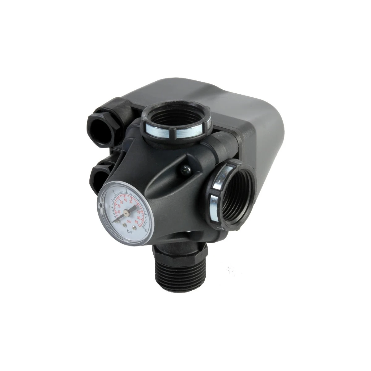 Устройство облегчает процесс монтажа автоматических насосных станций водоснабжения. Напряжение сети: 230 В, 50 Гц. Максимальная мощность: 1500 Вт. Максимальный коммутируемый ток: 12A. Максимальное рабочее давление: 5 бар. Диапазон регулирования давления включения: 1 - 2.5 бар. Диапазон регулирования давления выключения: 1.8 - 4.5 бар. Гидравлическое соединение: 1"х 1"х1" наружная-внутренняя-внутренняя резьба.
