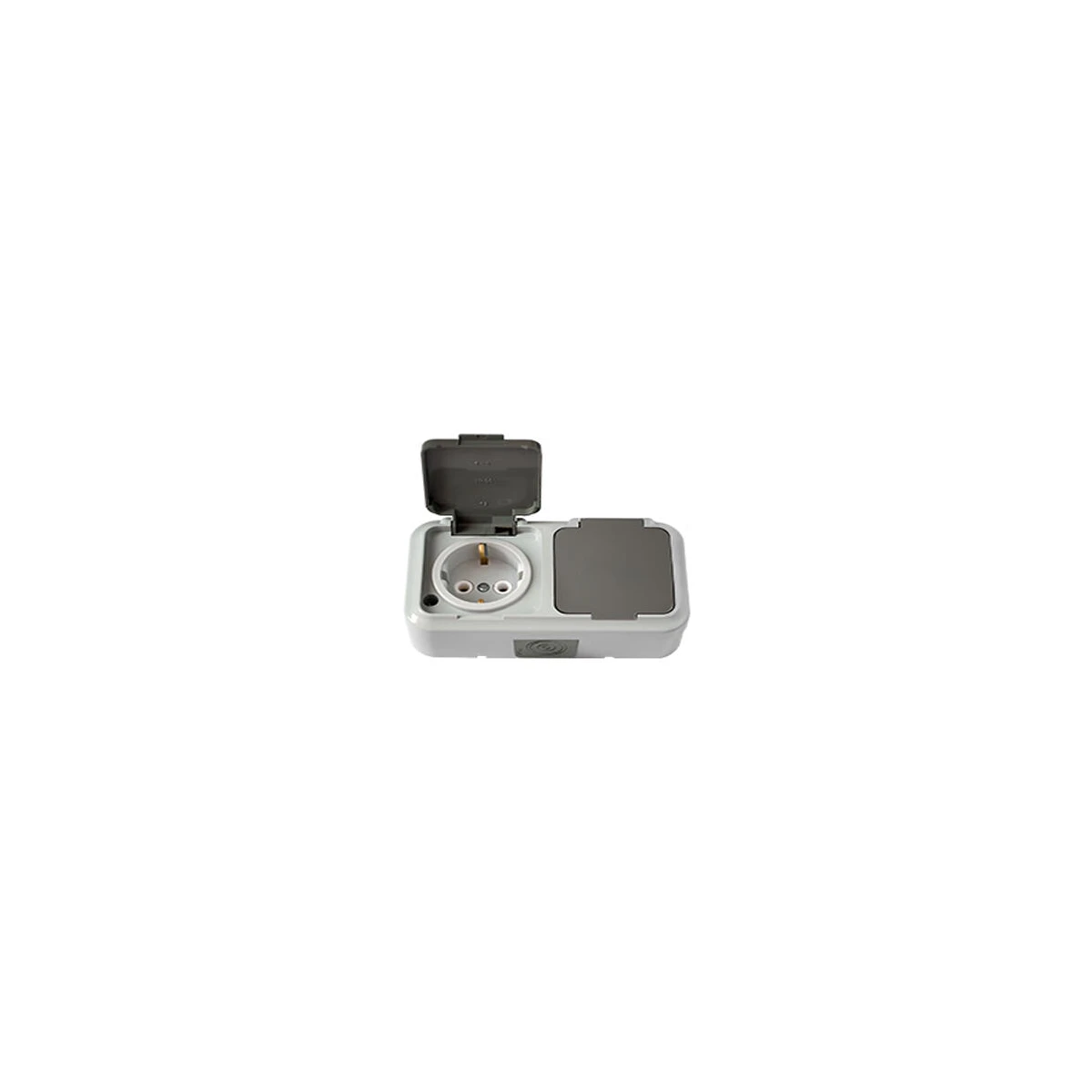 Розетка штепсельная двухместная с заземляющим контактом брызгозащищенная открытой установки |