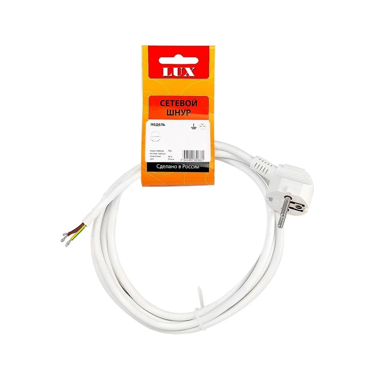 Сетевой шнур с вилкой без з/к ПВС 2х0,75 7м белый, LUX V2, Россия