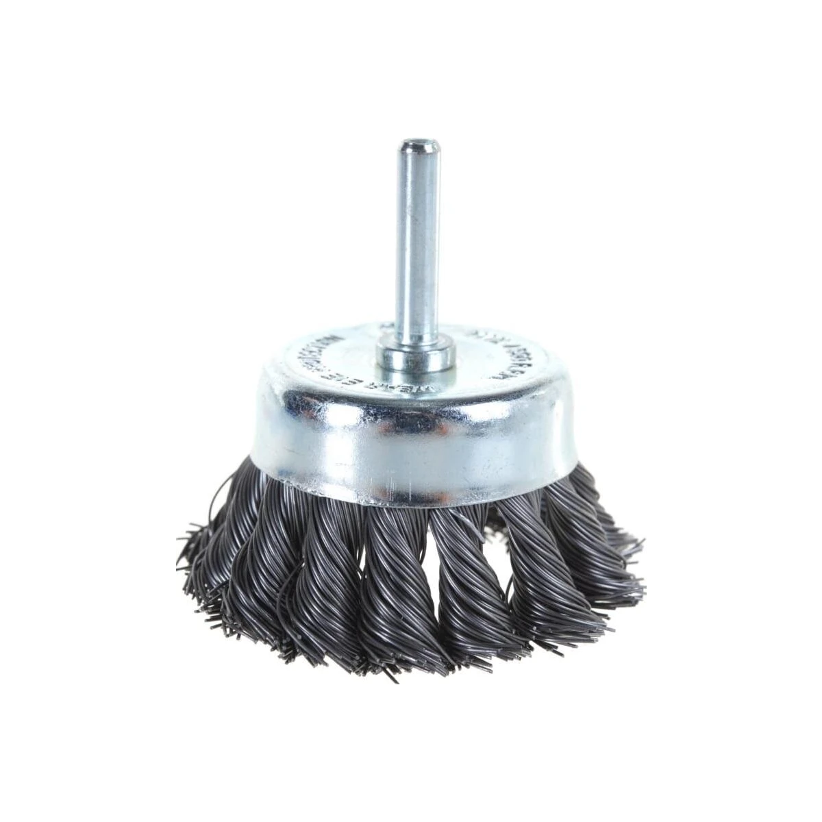 Кордщетка чашеобразная для дрели применяется для очистки от застаревшей краски и лака, коррозийного налета, шлака и окалины; зачистки изделий перед сваркой; шлифовки и полировки; удаления ненужной части наплавленного металла со сварных швов; браширования, текстурирования и шершевания древесины; выравнивания шероховатостей; удаления заусенцев; стачивания острых углов; черновой и финишной обработки. Нередко кордщетки используются в качестве альтернативы абразивным кругам. Диаметр кродщетки 65мм Диаметр хвостовика 6мм Длина хвостовика 27мм Максимальное количество об/мин 4500. Материал проволоки - сталь, форма проволоки - волнистая.