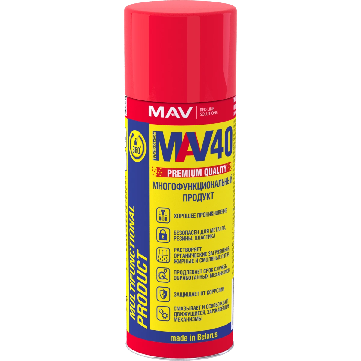 Многофункциональный продукт «MAV 40» белорусского бренда «MAV» ― универсальная смазка в удобной аэрозольной упаковке.