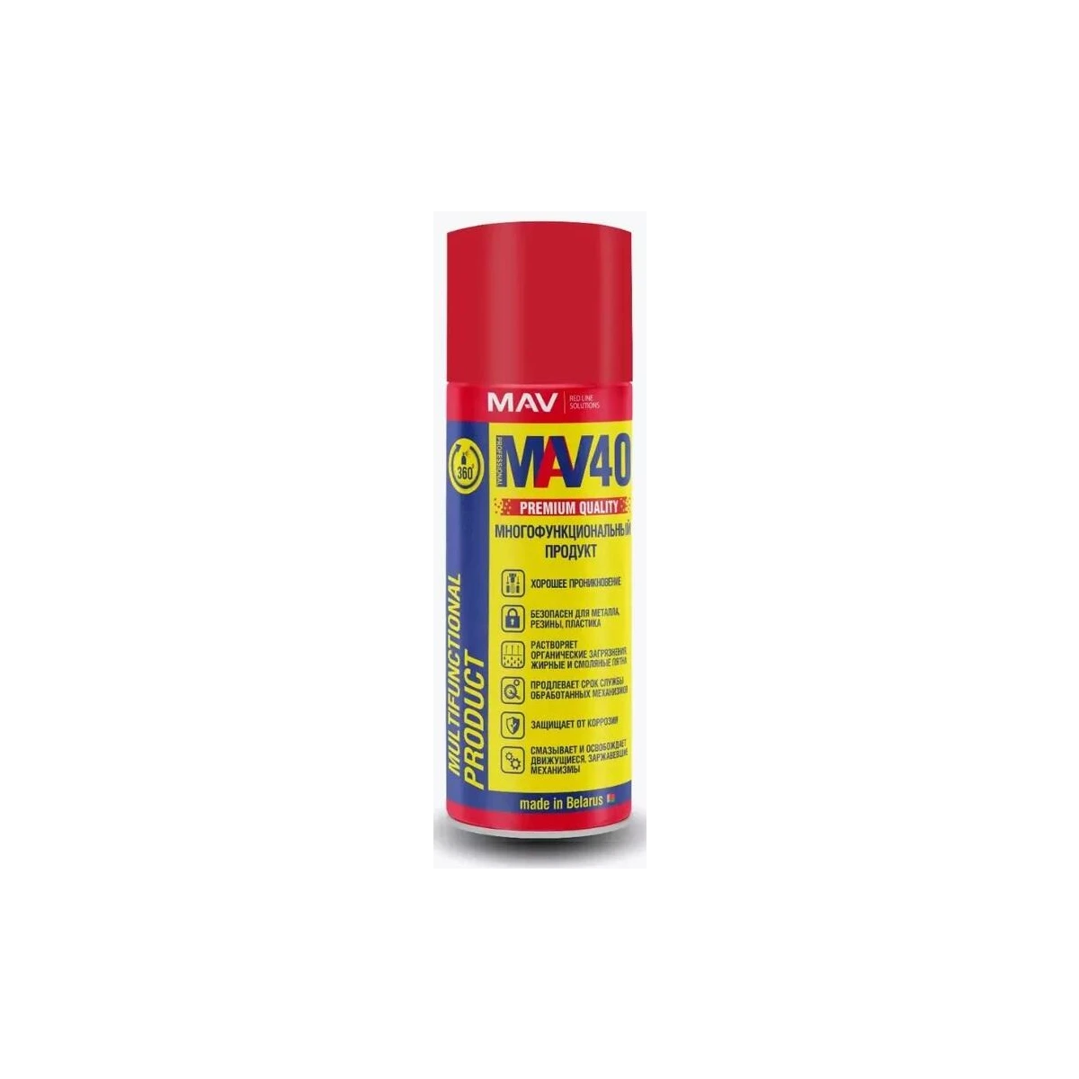 Продукт MAV 40 объемом 520 мл является универсальным средством, обладающим способностью эффективно проникать в закрытые пространства, удалять влагу из механизмов, очищать их от органических загрязнений и поверхностной коррозии, а также обеспечивать надежную смазку и защиту от коррозии.