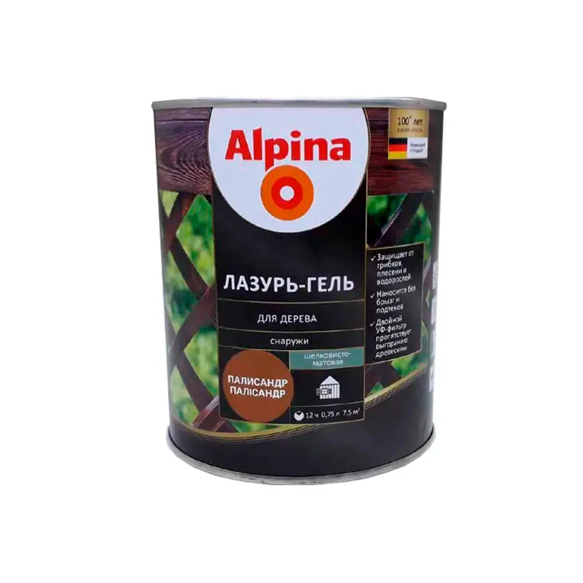Средство защитно-декоративное для дерева Лазурь-гель палисандр (бан/0.75л), Alpina, Беларусь