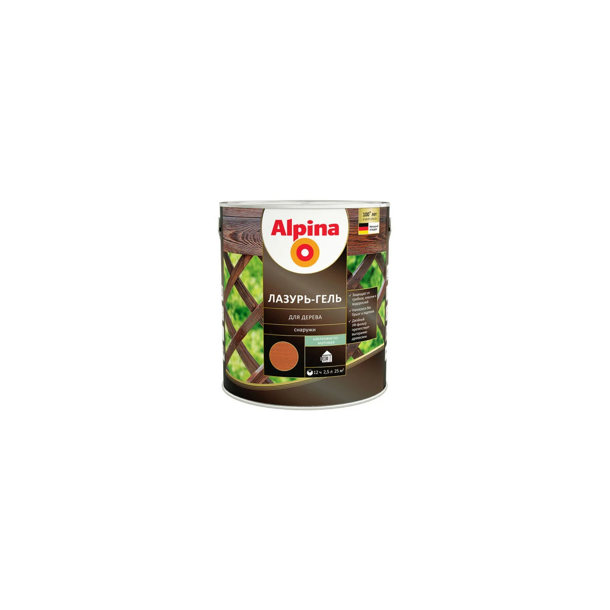 Средство защитно-декоративное для дерева Лазурь-гель тик (бан/0.75л), Alpina, Беларусь