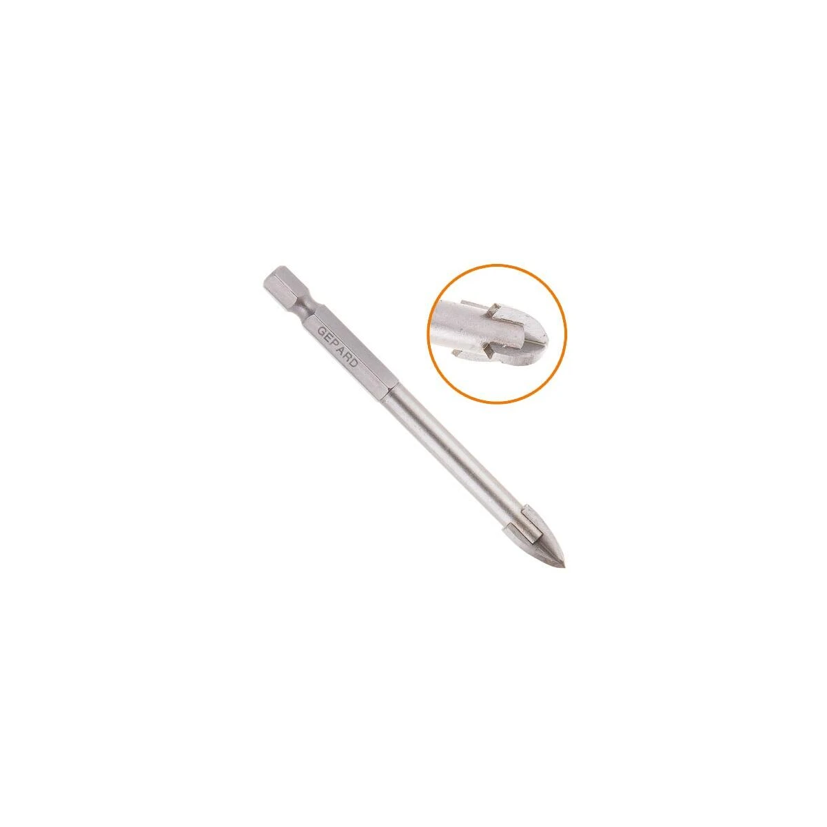 Сверло по кафелю/стеклу, 6х75мм, четырехкромоч. шестигр., GEPARD, Китай