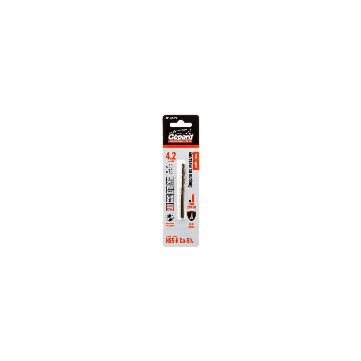 Сверло по металлу ц/х 4.2х43х75 мм HSS-Co GEPARD, арт.GP1442-075, Китай