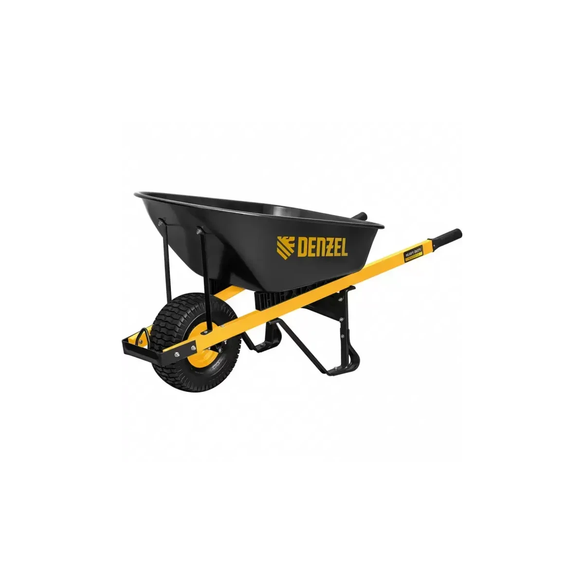 Усиленная строительная тачка Denzel 68999 с колесо 15 х 6,00-6, объемом 140 л и грузоподъемностью до 230 кг, пригодится профессиональным строителям и фермерам для ежедневного использования. Оптимально подходит для использования на строительных объектах и в сельском хозяйстве. С ее помощью можно транспортировать строительные грузы, сыпучие материалы и т.д.ПреимуществаРама с профилем 50 х 25 мм толщиной 1,2 мм характеризуется жесткостью и стабильностью, что положительно сказывается на ресурсе тачки.Прочность и надежность конструкции обеспечивает продуманная до мелочей конструкция: усиленная перемычка, широкие опоры, подпятники на ножках, мощная дуга с ребром жесткости.Благодаря завальцованным бортикам достигается высокая ударостойкость верхней части кузова.Кузов и рама надежно защищены от коррозии благодаря эмалевому покрытию.Широкое пневмоколесо с грунтозацепом и мощная рама с подпятниками предотвращают проваливание тележки в грунт.Колесо установлено на два шариковых подшипника, что гарантирует надежность крепления и высокую проходимость тачки.Специальная петля на раме облегчает транспортировку тачки при полной загрузке и позволяет второму человеку буксировать тачку при необходимости.Для удобства фронтальной разгрузки предусмотрена дуга для упора на колесе.