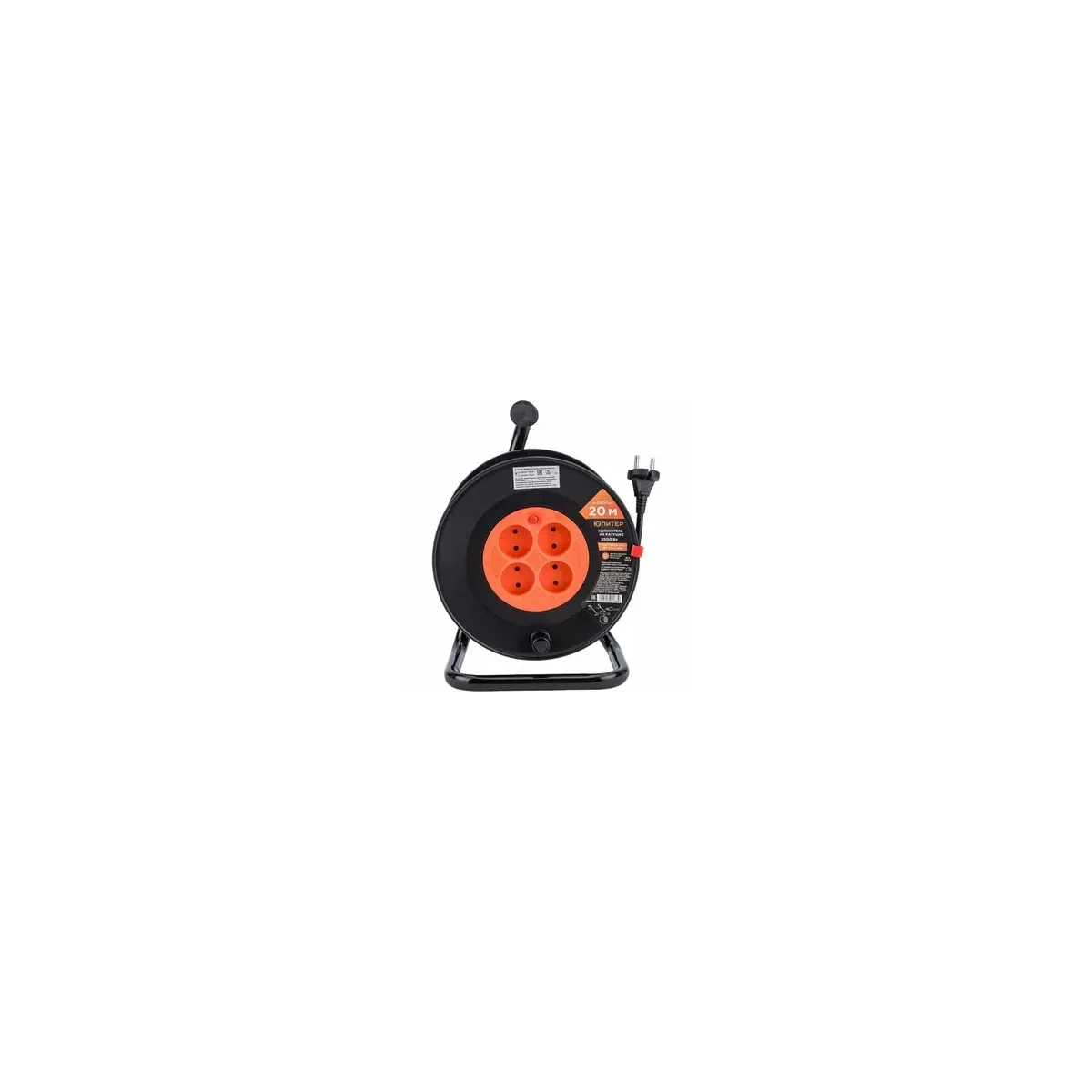 Удлинитель на катушке, 4роз, 20м, 3.5кВт, ПВС 3*1.5, с з/к, Юпитер, JP8404-04, Китай