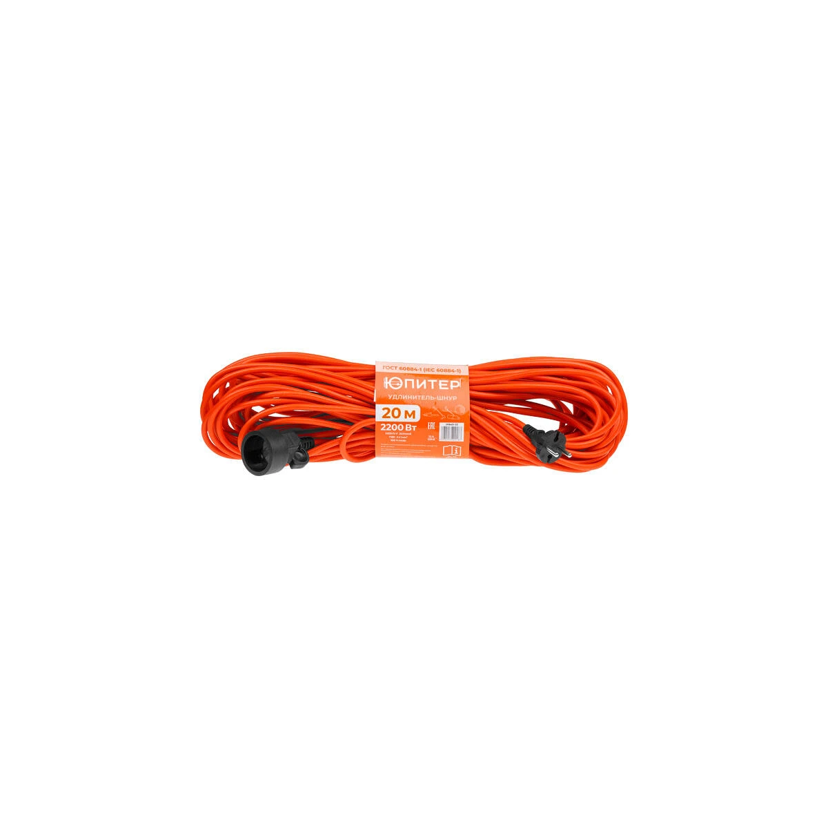 Удлинитель-шнур 20м (1 роз., 2,2кВт, б/з, ПВС 2х1), Юпитер, арт.JP8401-02