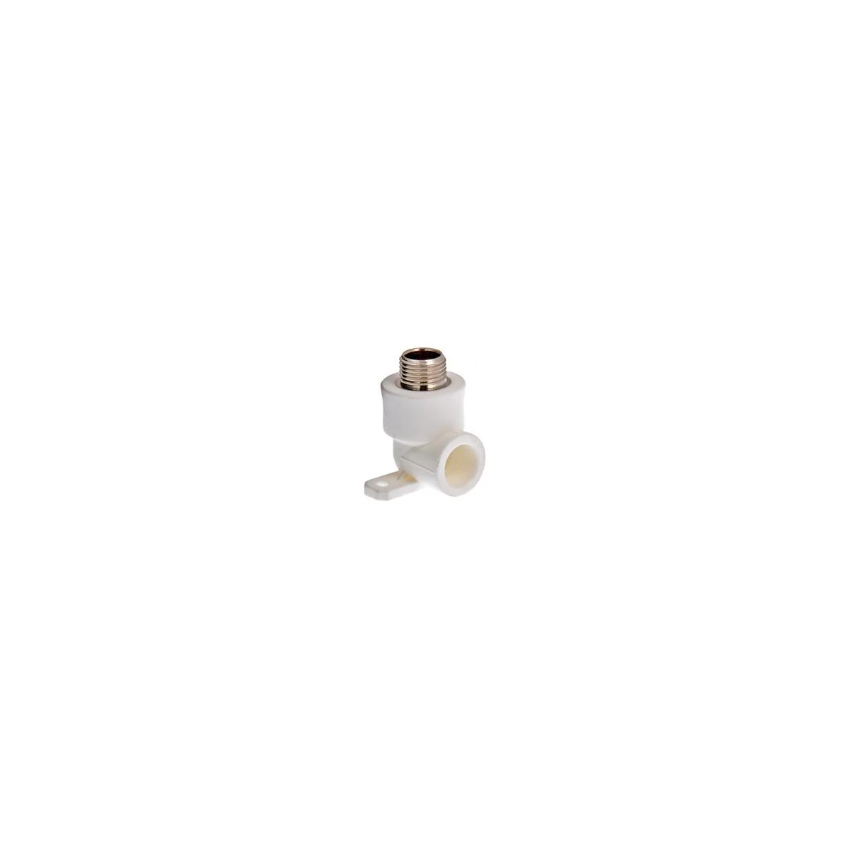 Угольник комбинированный PPR-3 полипропиленовый с креплением предназначен для герметичного соединения труб в системе трубопровода. Используется в системах холодного и горячего водоснабжения, в системах отопления, водоподготовки, канализации и технологических трубопроводах. Выполнен из высококачественного и надежного пластика, который отличается легкостью и гибкостью материала, благодаря чему гарантируется длительный срок эксплуатации. Устойчив к перепадам температур. Угольник из полипропилена с одной стороны имеет конец под приварку диамметром 20 мм, а с другой – оснащается закладной деталью с наружной резьбой 1/2.