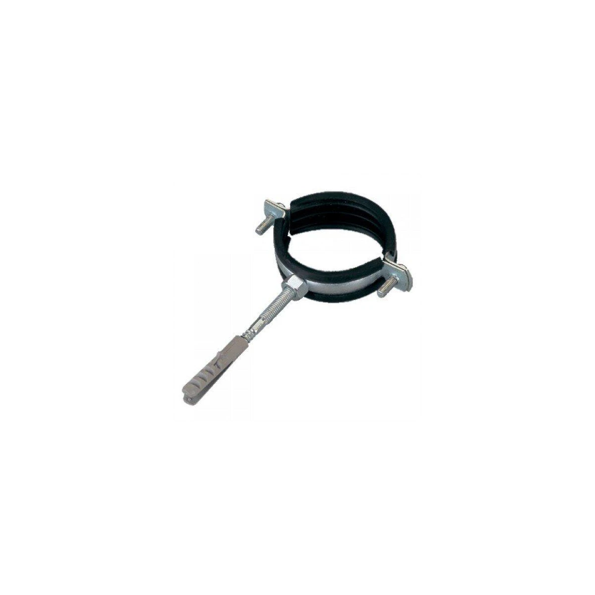 Конструкция сантехнического хомута состоит из двух металлических скоб, которым методом штамповки придают полукруглую форму с ребрами жесткости. Скобы фиксируются между собой с помощью винтового соединения. Сами скобы металлического хомута выполнены из оцинкованной стали. Кроме этого трубный хомут имеет резиновый вкладыш, (разделенный на две части), который выполнен из качественно пористого материала. Что позволяет получить отличную звуковую и виброизоляцию.